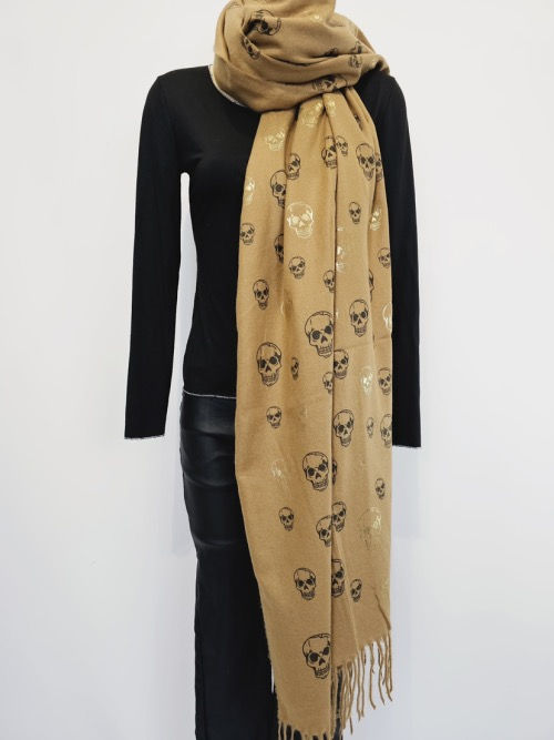 Écharpe camel avec tête de mort en or