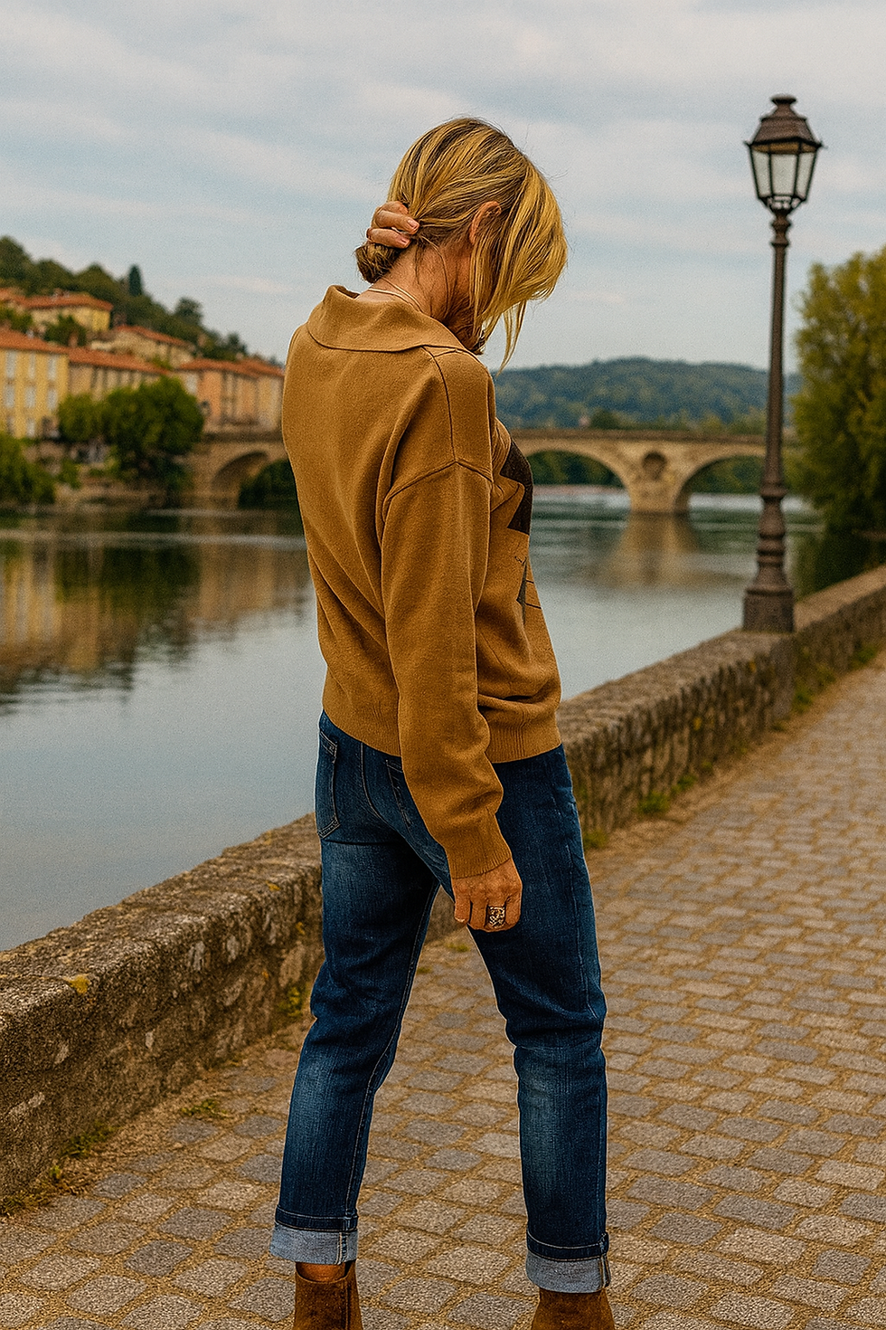 Pull chocolat col ajouré