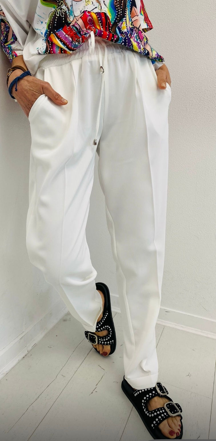 Pantalon blanc fluide avec lien